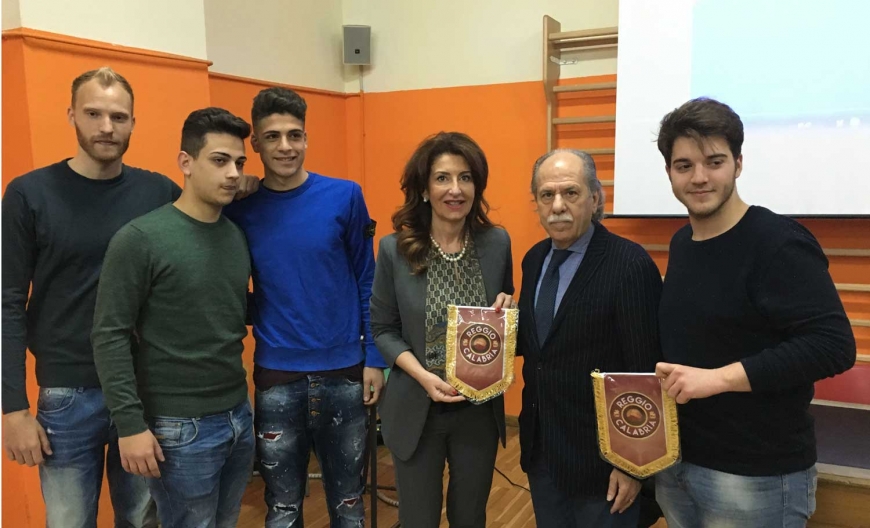 “Lo sport nel territorio reggino”. Questo il tema trattato alla scuola “Convitto Tommaso Campanella” di Reggio Calabria. Ospiti della dirigente dott.ssa Francesca Arena, il presidente dell’ASD Reggio Calabria Mimmo Praticó e i tesserati amaranto Alessio De Bode e Carmelo Maesano.