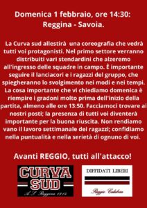 Sale l’attesa per big match del Granillo tra Reggina e Savoia. In palio, tre punti pesantissimi che diranno tanto per la corsa degli amaranto di Torrisi alla prima posizione della classifica del girone I di serie D. Nei giorni scorsi, gli ultras della curva Sud, come già scritto in altro articolo, hanno rivolto un appello apparso sulla loro pagina social chiamando a raccolta i tifosi, chiedendo loro di riempire in massa lo stadio ed il settore di competenza.
