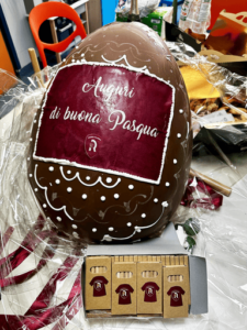 L’uovo di cioccolata è stato preparato dalla “Gelateria Matteotti”.