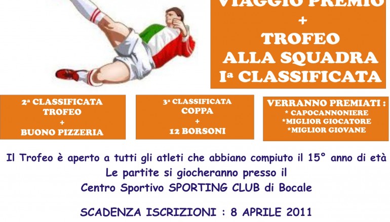 Il centro sportivo “Sporting Club di Bocale”, in collaborazione con il Csi organizza un Trofeo di calcio a 5 2011 primaverile.