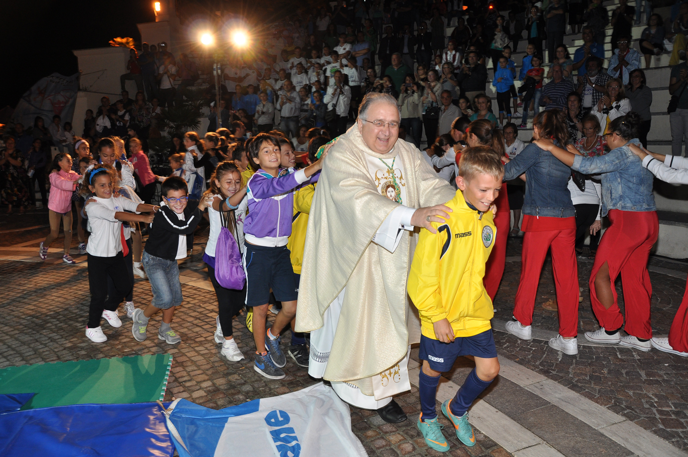 La Messa si è conclusa con una grande festa, con decine di giovani sportivi attorno all’altare con il Vescovo e con il presidente Praticò e poi, alla fine, con un momento di straordinaria gioia, quando il vescovo si è unito a centinaia di bambini, correndo con loro e formando una sorta di “trenino” umano, che il prelato, da abile comunicatore, ha definito «il treno della pace».