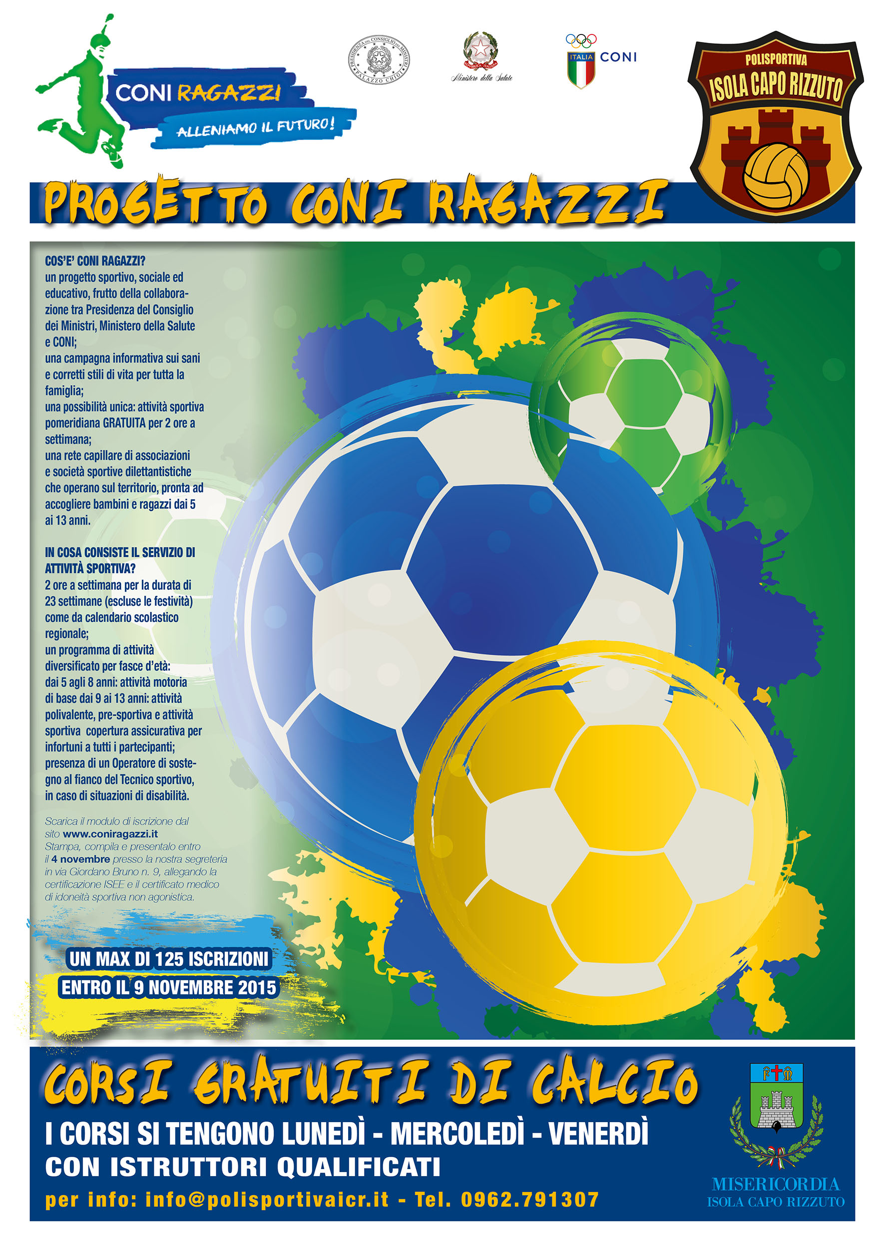 Tra gli obiettivi primari del progetto, ovviamente, ci sarà anche la diffusione dei valori educativi dello sport, come lo spirito di gruppo, l’inclusione sociale e, soprattutto, la valorizzazione delle differenze. L’attività sarà suddivisa in 2 ore settimanali, per 23 settimane, il tutto in forma gratuita. Il programma sarà diversificato per diverse fasce di età, con attività principale legata al calcio. Dai 5 agli 8 anni si svolgerà attività motoria di base, mentre dai 9 ai 13 anni attività pre sportiva e sportiva. La Misericordia partecipa con entusiasmo a questa iniziativa, lo fa attraverso la propria società di calcio che da oltre un anno si sta distinguendo in tutta la regione, sia con la prima squadra sia con le formazioni giovanili. Alla base di tutto ciò c’è sicuramente la sensibilità dell’associazione verso i giovani del territorio, come da sempre mostrato dal parroco Don Edoardo Scordio, dal governatore Leonardo Sacco e da tutti i membri della nota associazione di volontariato che da oltre 25 anni opera sul territorio di Isola Capo Rizzuto. Le iscrizioni sono aperte a tutti e per partecipare basta accedere al sito www.coniragazzi.it, scaricare il modulo d’iscrizione, stamparlo, compilarlo e presentarlo entro il 4 Novembre presso la segreteria della Misericordia sita in Via Giordano Bruno, n°9, allegando certificazione ISEE e certificato medico d’idoneità sportiva non agonistica.