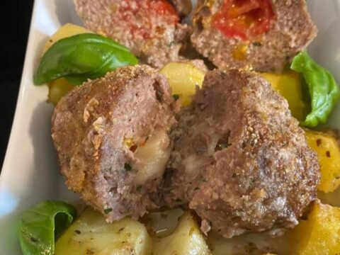 Spiedini di carne tritata con formaggio e pomodorini. Ricette Ntacalabria