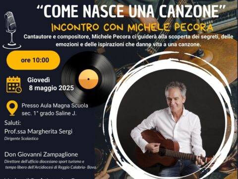 “Come nasce una canzone”, è questo il titolo dell’incontro musicale con l’artista Michele Pecora che si terrà presso l’Aula Magna…