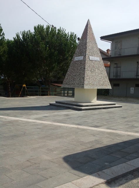 L’idea di far sorgere un monumento in quel punto è stata della ex amministrazione comunale. L’intento non era quello di erigere un monumento alla Massoneria come qualcuno ha malignamente sospettato, né di costruire una base di lancio missilistica, né di piantare un albero di Natale con tutto il rispetto per tutte le persone che a Natale addobbano le loro case col tradizionale albero. Niente di tutto questo. L’intento era di affiggere in ogni lato della piramide una lapide che ricordasse, nella logica di un contesto storico e culturale omogeneo: