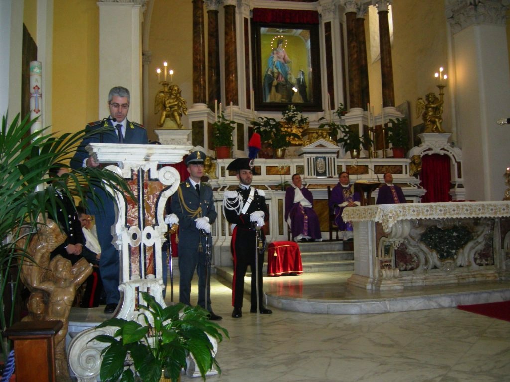 In preparazione alla Santa Pasqua è stata officiata presso la chiesa “Santa Maria La Nova” di Vibo Valentia, da Mons Vincenzo Varone e dai cappellani militari dei Carabinieri e della Guardia di Finanza – Don Vincenzo Ruggiero e Don Ignazio Iacone, alla presenza di numerose Autorità civili e militari, una celebrazione eucaristica a beneficio delle Forze Armate, di Polizia e degli altri Corpi dello Stato operanti nel territorio vibonese. Durante l’omelia Don Vincenzo ha sottolineato, tra l’altro, l’importanza di accettare con amore quanto ci accade e la gratuità che deve contraddistinguere sempre i nostri atteggiamenti, mentre Don Ignazio ha rimarcato quello che è il significato più profondo della croce come fondamento vero della nostra fede Cristiana. Il parroco ospitante ha formulato a tutti gli intervenuti i più sinceri auguri pasquali ed in chiusura, particolarmente coinvolgente, la lettura della “Preghiera per la Patria”.