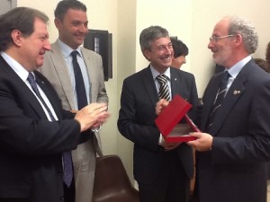 Il Sindaco Nicola D’Agostino ha donato in segno di ospitalità, una targa con impresso il castello Normanno -Svevo di Vibo Valentia, ricevendo, simbolicamente, un braccialetto Kiwanis.