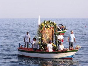 Melito Porto Salvo, 14 Agosto 2010, come ogni anno la ormai famosa processione del quadro della Madonna di Porto Salvo in mare, sulle barche dei pescatori >>>