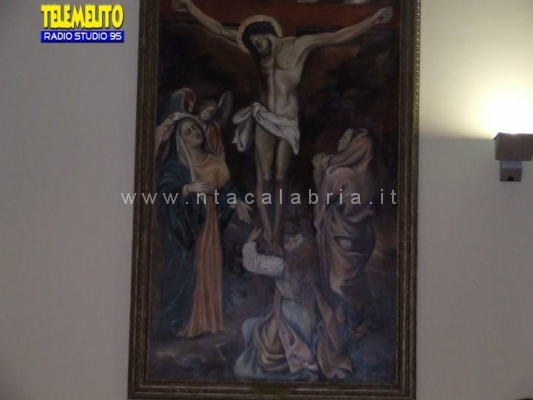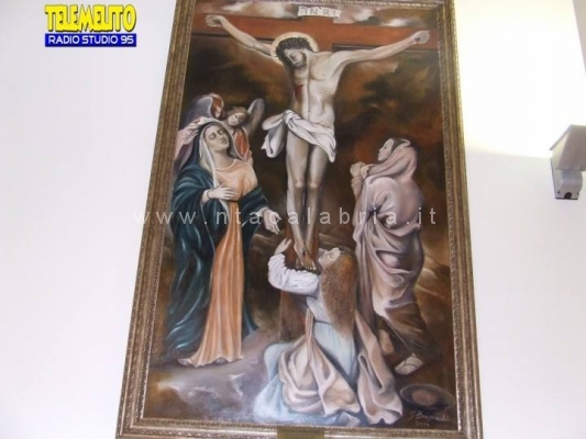 Ecco la presentazione e donazione dell’opera “crocifissione con la Madonna e Pie Donne” di Giovanna Brigandi alla Comunità di Marina di San Lorenzo, in provincia di Reggio Calabria. Foto di Tele Melito-Radio Studio 95