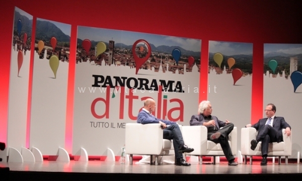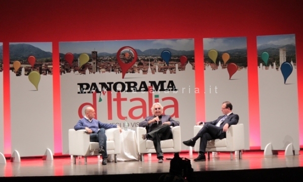 Importante discussione Signorini–Briatore a Reggio Calabria. L’evento, che rientrava all’interno della tre giorni organizzati dal giornale Panorama, si é tenuto presso il Teatro Cilea. Nelle foto si nota il duo Signorini-Briatore alle prese con le varie domande.